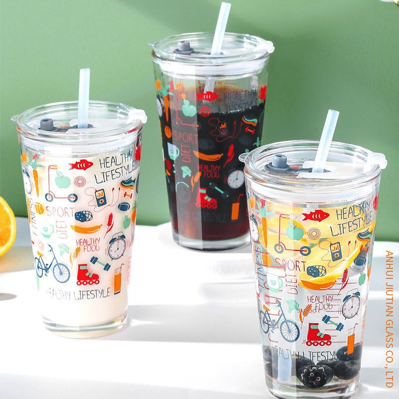 Jiu Tian Graffiti ダブルドリンクグラス 400 ミリリットルストロー付きドリンクカップクリエイティブ漫画ジュースドリンクカップ卸売ギフト