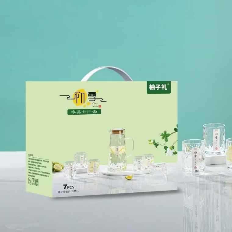 皖美之雅初雪水具七件套简约玻璃杯壶套装商务广告促销福礼品批发