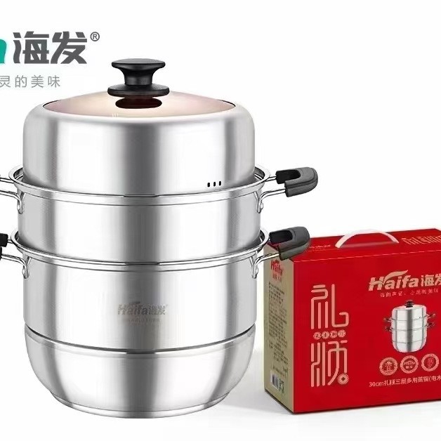 Haifa Lishun 三層蒸し器 30 センチメートルステンレス鋼火傷防止ベークライトハンドル保険会社福祉製品卸売グループ購入