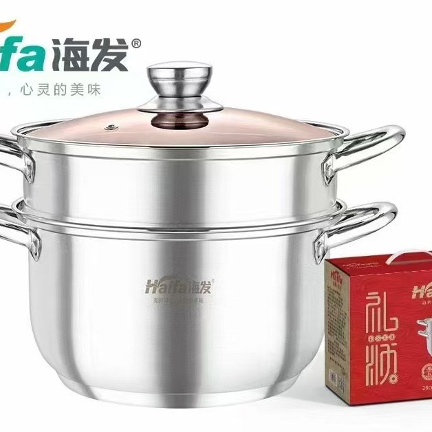 Haifa Lishun 蒸しスープポット 26 センチメートルステンレス鋼上部蒸し下調理ポットカラーボックス銀行保険福祉製品卸売