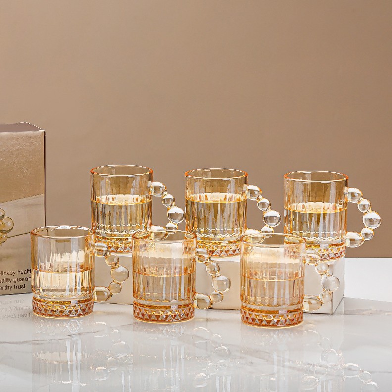 Love Journey ラージパールハンドルカップ 6 点セット家庭用高級ミルクジュースコーヒーガラス卸売グループ購入