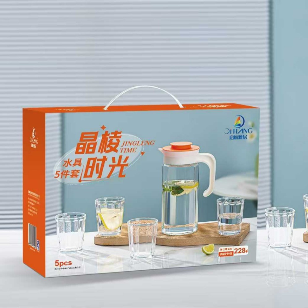 启航雅居晶棱时光水具五件套创意轻奢玻璃冷水杯壶套装商务礼品批