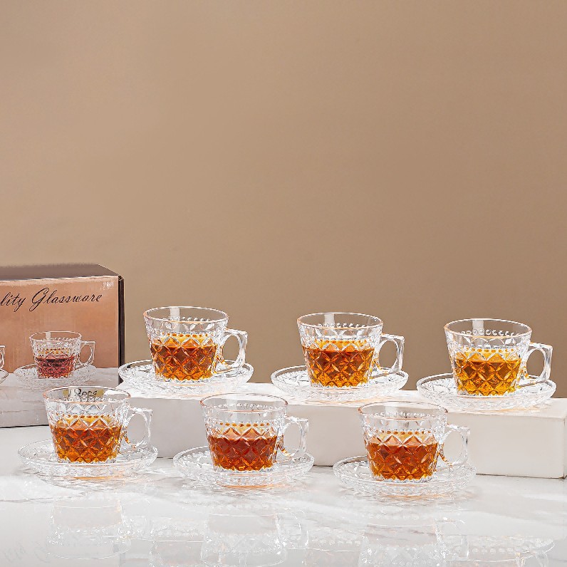 爱之旅AIZLV735杯碟十二件套玻璃把杯家用玻璃杯随手礼珠宝活动礼