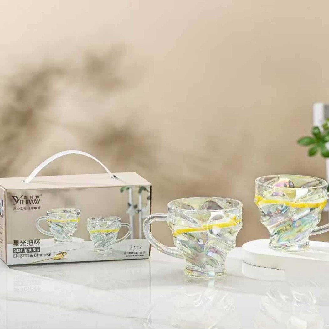 スターライトカップ 2 点セット、クリエイティブなカラーボックス入りガラスカップ、開店祝い、顧客へのギフト、卸売グループ購入