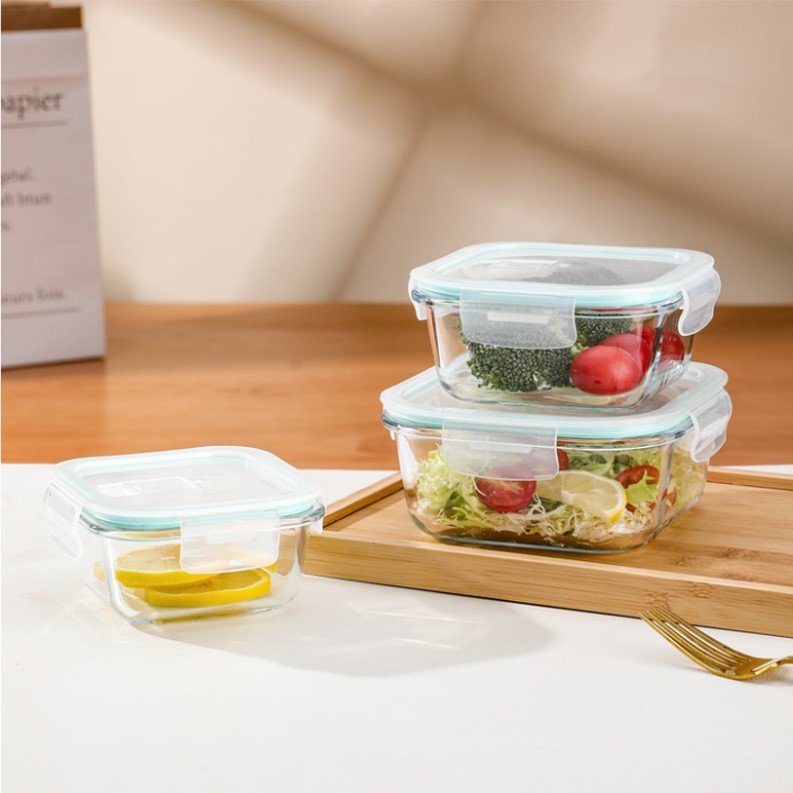 Leweishi LTCW/L3 レオパルド鮮度保持ボウル 3点セット 家庭用ガラス弁当箱 オフィスワーカー ポータブル弁当箱 バッチ
