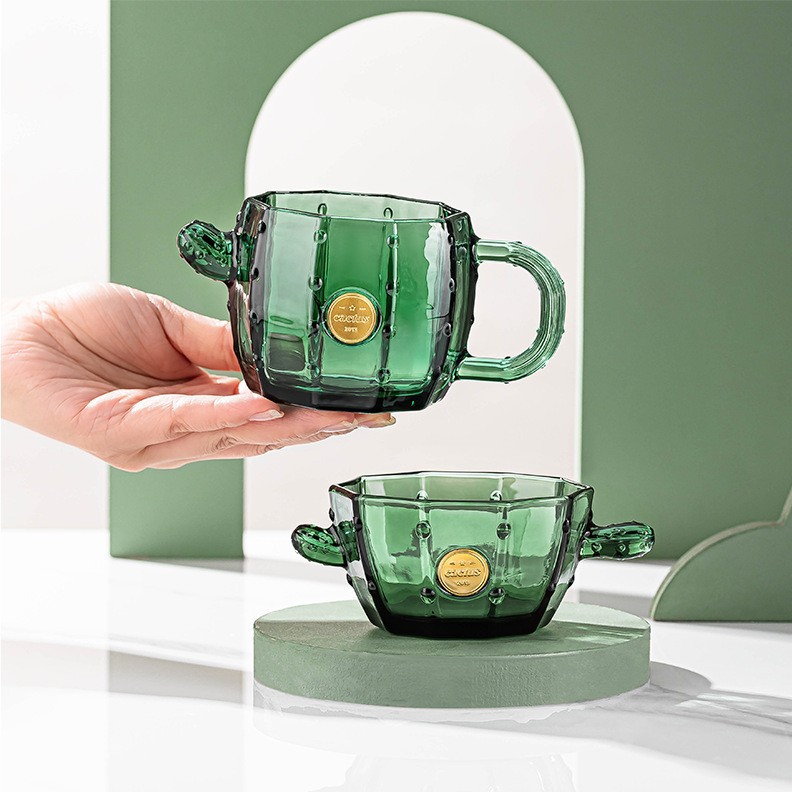 Leweishi XRZBW/L2 サボテンカップとボウル 2 点セット ガラスボウルとカップ レトロな高価値ギフト