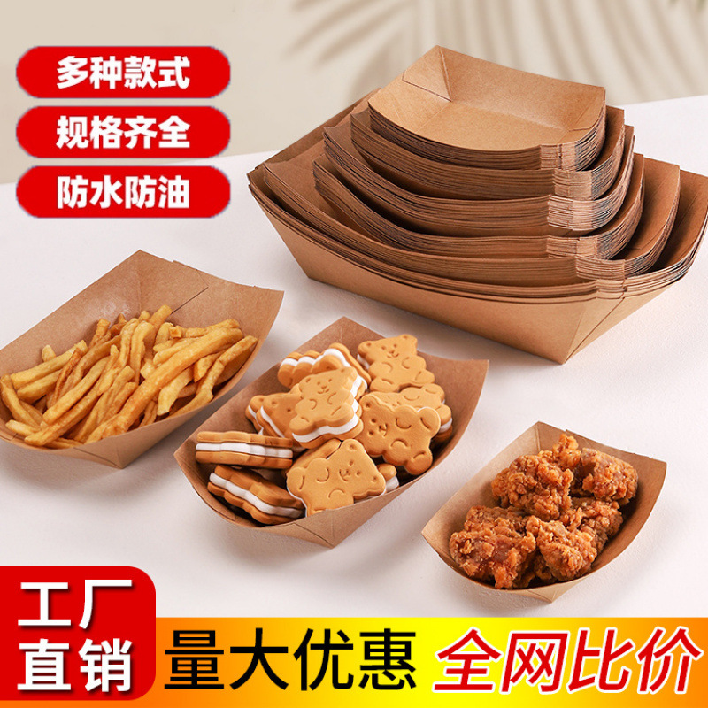 船の箱の防油の使い捨ての弁当箱の開放の軽食の包装箱の鶏の列の鶏肉の花のフライドチキンのクラフト紙の折らない皿