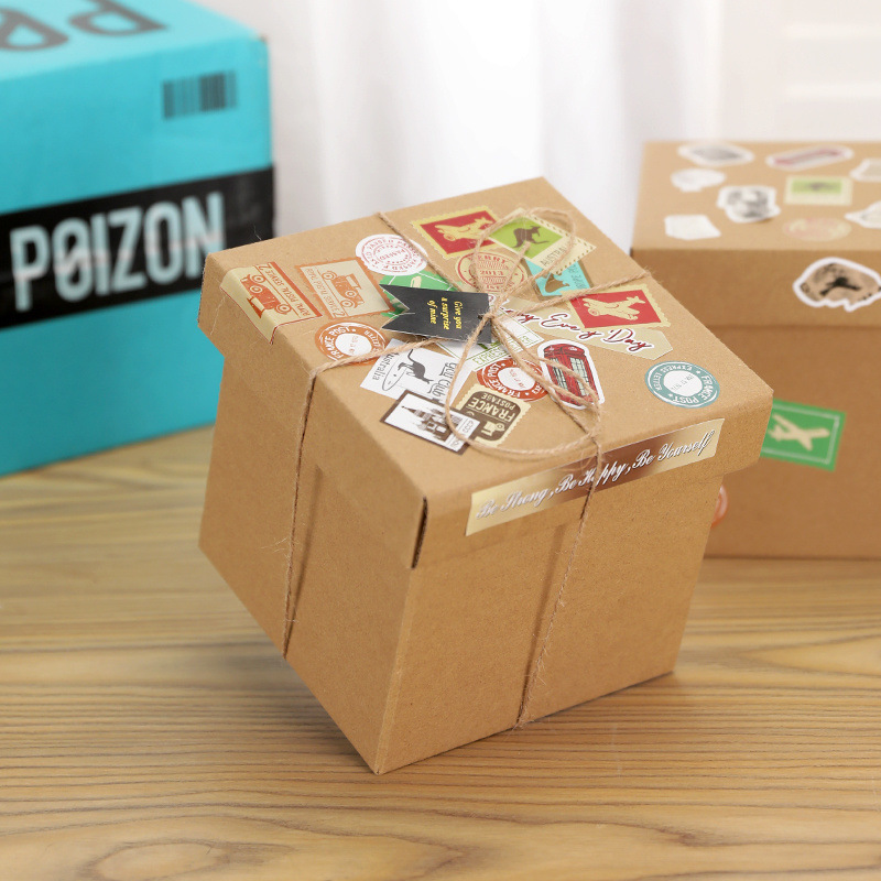 レトロなシールのプレゼントの箱のクラフト紙の誕生日のプレゼントの箱の正方形のDIY英倫風の牛革は一つ一つ卸売りを始めます。