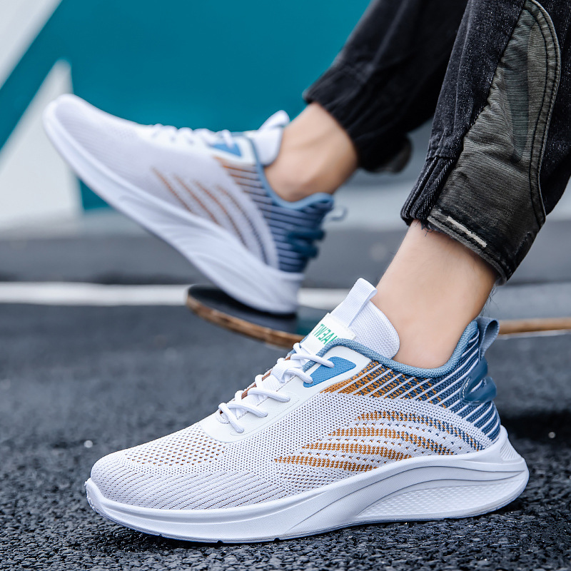 2024 新通気性カジュアルシューズ春メンズスポーツシューズフライング織潮靴フライング織紳士靴学生ランニングシューズ