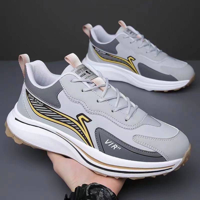 2023新型男性靴春秋カジュアル靴ランニング厚底靴国境を越えた通気性皮面スポーツシューズおじさん靴