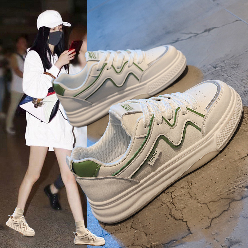 クロスボーダー春と秋の新型の平底には厚い底のビスケットの底の白い靴があります。