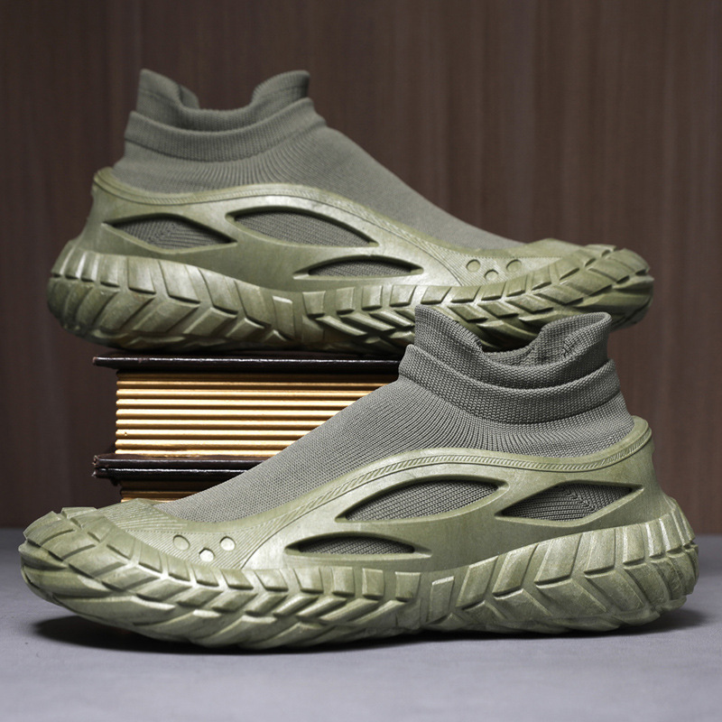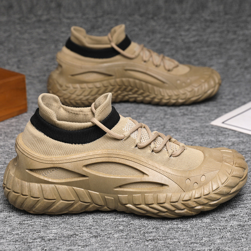 越境男靴の通気性2025新型夏のファッションはスポーツネットの男性の厚い底が高くなります。