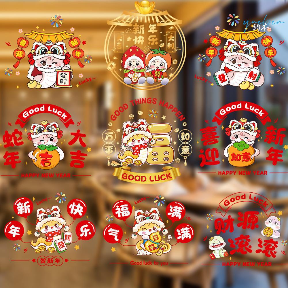 旧正月の窓の花の静電はガラスを貼って蛇年の装飾品の冷蔵庫を貼って新年の盆栽の緑を貼って福の字の扉を飾って貼ります。
