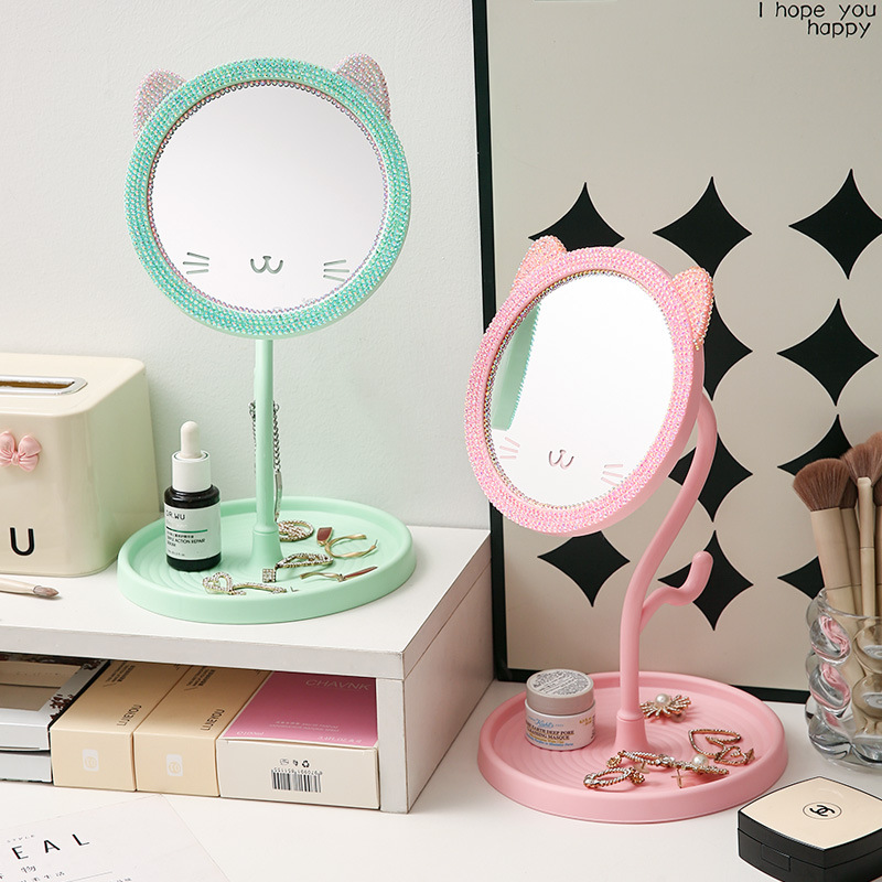 手作りドリルデスクトップ猫鏡学生寮かわいいアニメ化粧鏡誕生日プレゼントにドリル化粧鏡を入れる