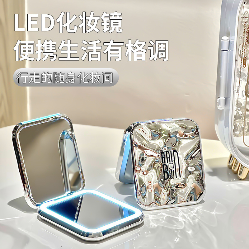LED化粧鏡学生寮ランプ付き折り畳み鏡デスクトップデスクトップ手持ち鏡女性携帯両面鏡