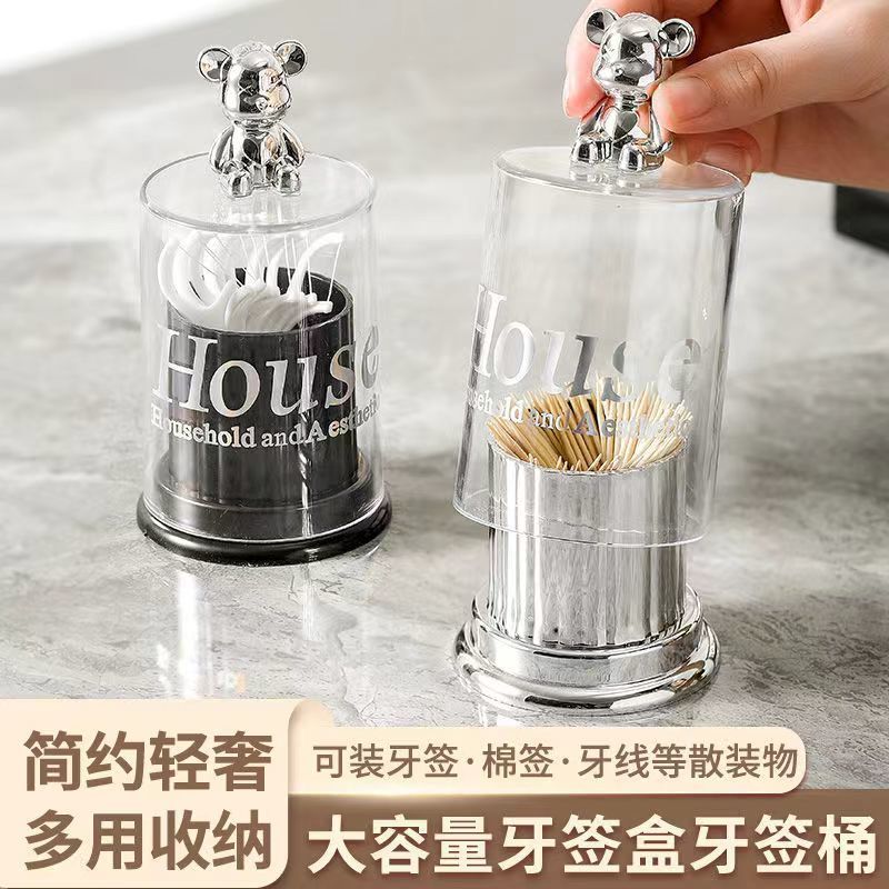 ネットの赤い暴力の熊のアクリルのつまようじの筒の台所のレストランのつまようじの収納箱の軽い贅沢な家庭の寝室の綿棒の箱
