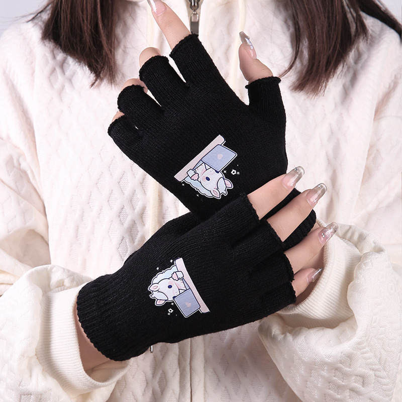 漫画プリント手袋冬のオフィス学生は針を漏らして手袋を編んで、男女の毛を厚くして保温します。