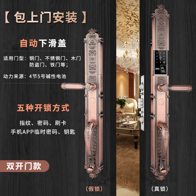 ヴィラゲート指紋ロック両開きドア電子パスワードロックヨーロッパ銅ゲート屋外顔認識ロック