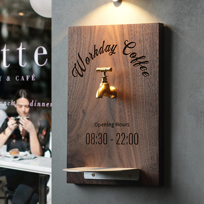 蛇口コーヒーミルクティーショップの楽しいインスタレーションチェックインサインリラックス感のあるドアサイン、コンテナ付き