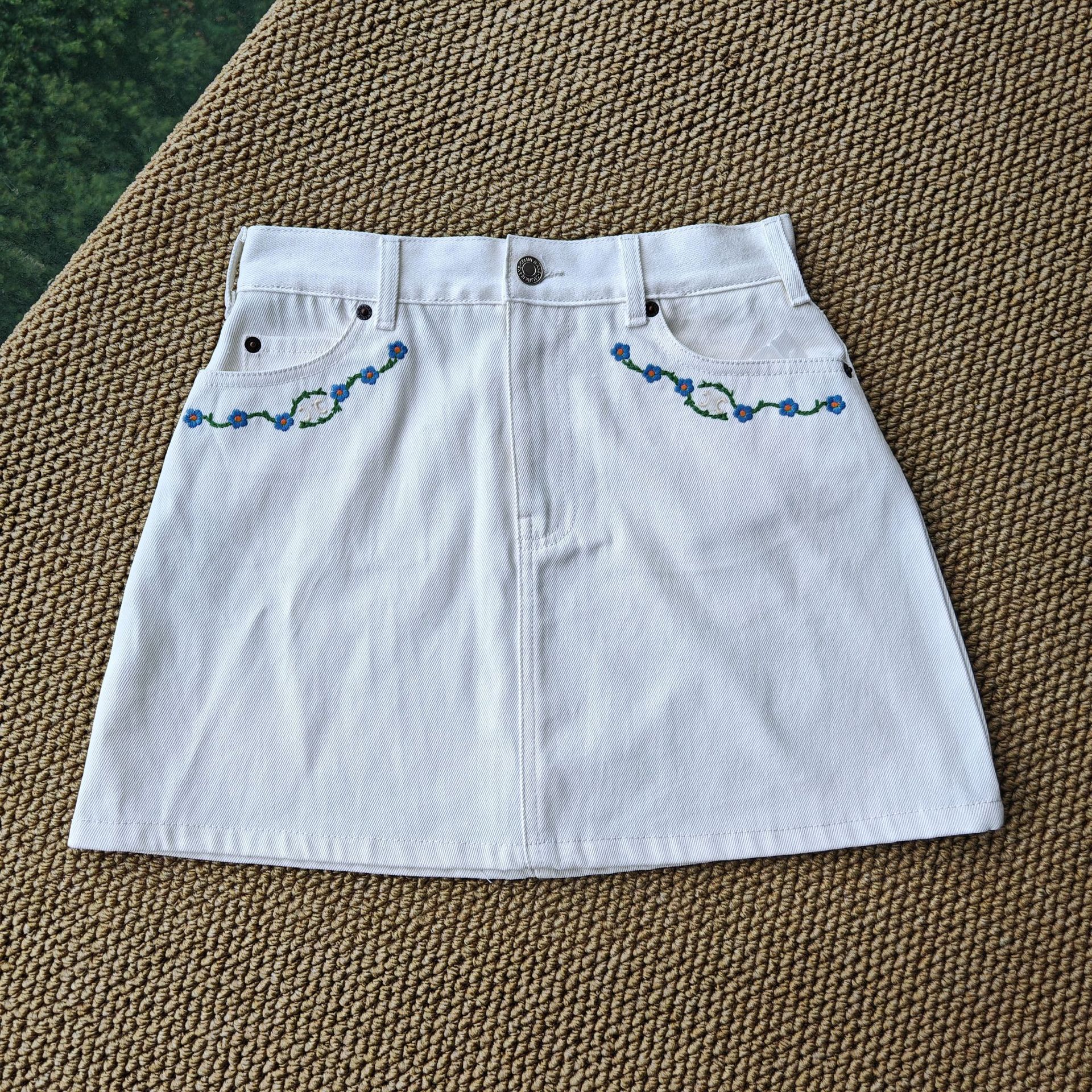 Nanyou ハイエンド 25 夏凱旋門ポケットレース刺繍ハイウエストスリムホワイト多用途デニムスカート女性用