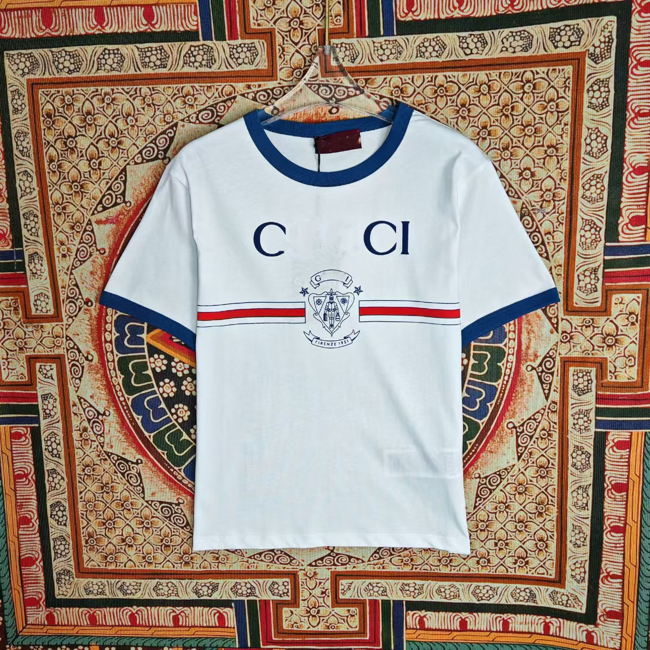 正しいバージョン 2025 夏の新しい G ファミリー 1921 バッジプリントラウンドネック半袖 T シャツトップス男性と女性用