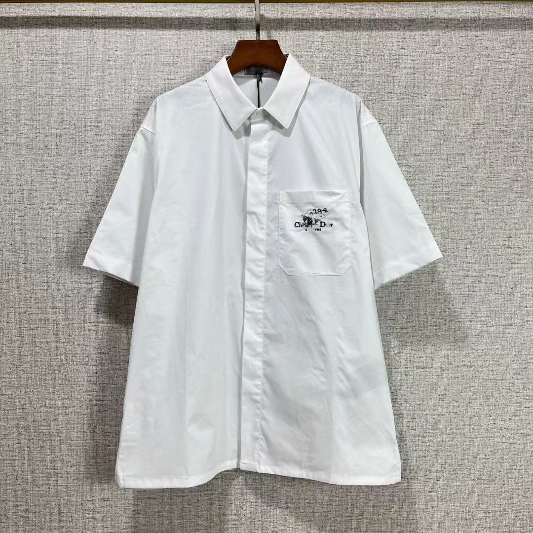 25SS 夏 D's 新作 リンゴンフラワー刺繍半袖シャツ 男女兼用 カップルトレンドブランドシャツ