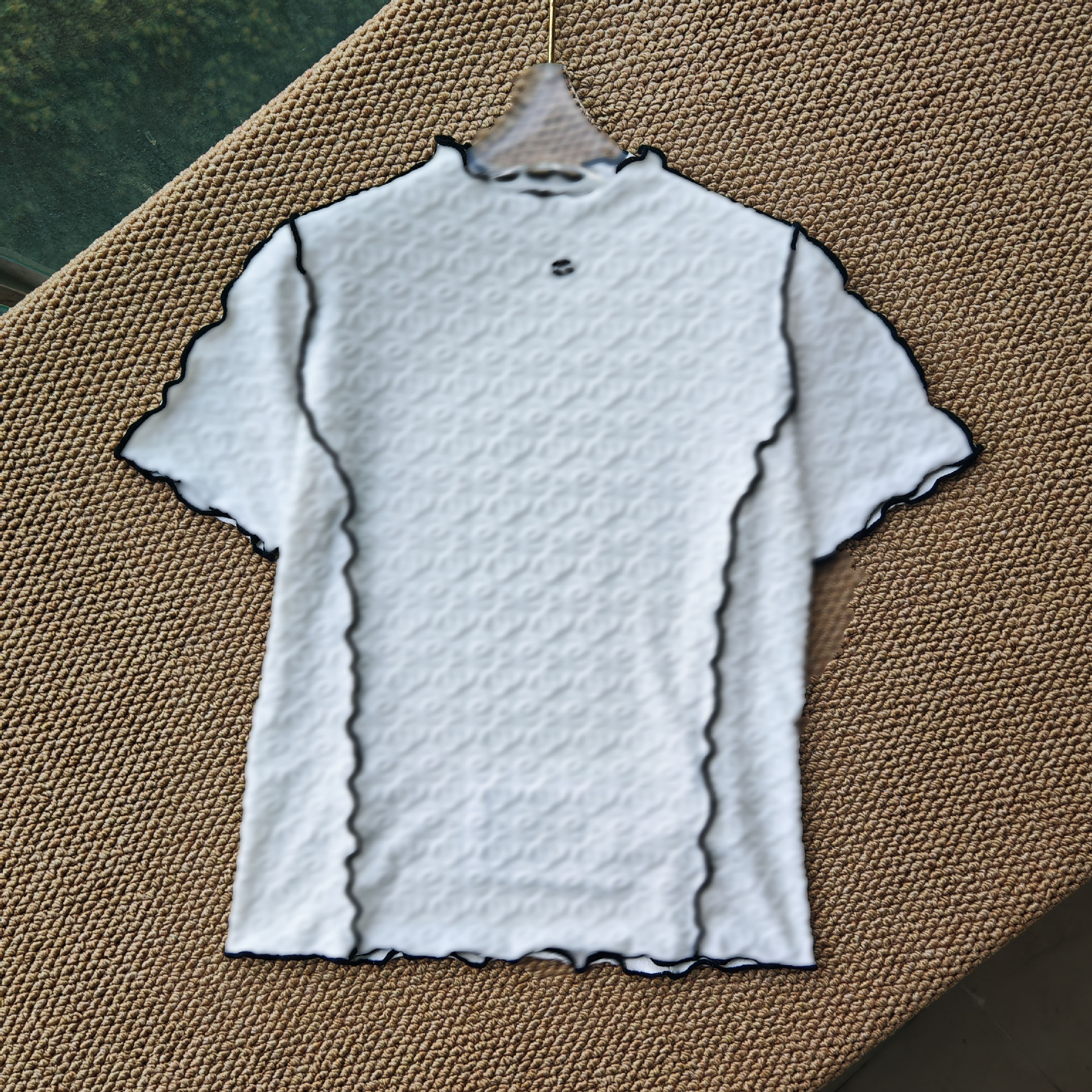 深セン南油正確高バージョンCH家25春夏新作木耳元丸首半袖ニットシャツ衝突色上着