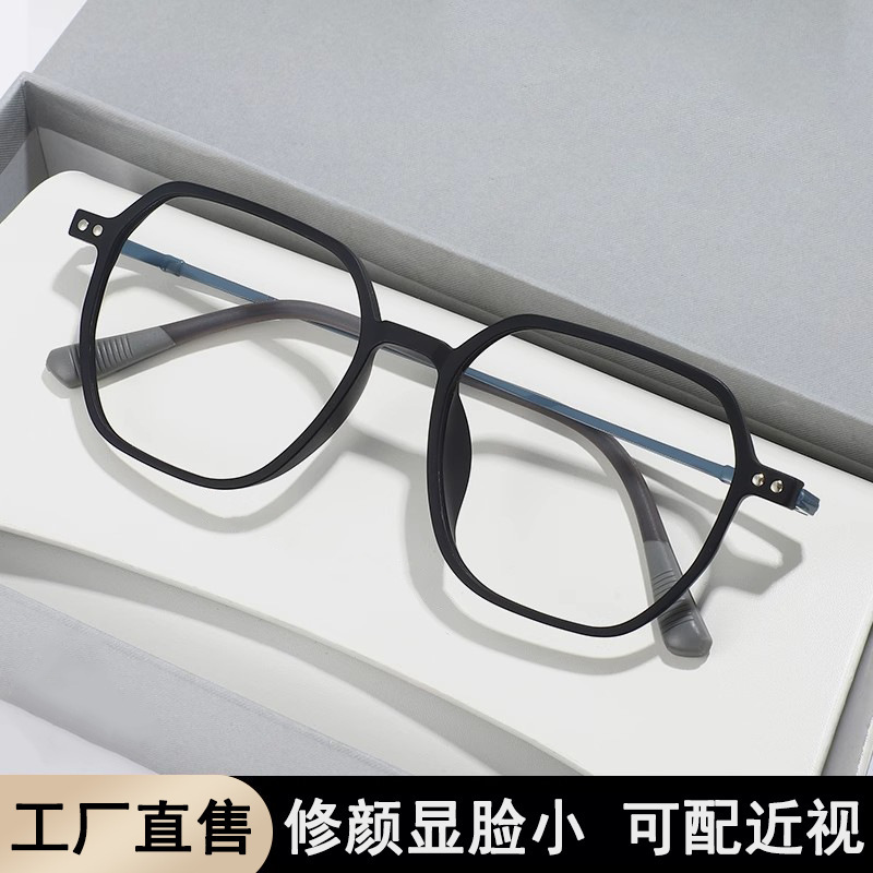 デザイナー超軽量つや消し多角形近視メガネ、度付きの女性、学生、男性、ノーメイクのブルーライト防止アイフレーム用