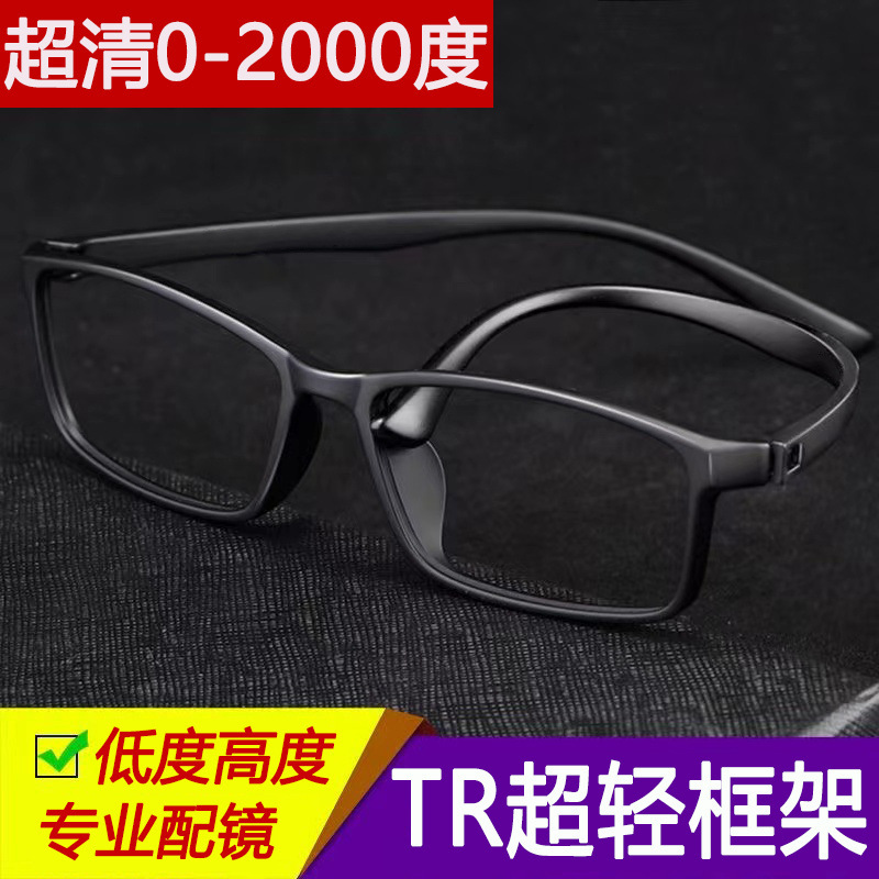 女性用超軽量メタルフリー近視メガネ、フルフレーム TR90 高精細抗青色光フラットメガネ、2000 度の近視メガネを装備可能