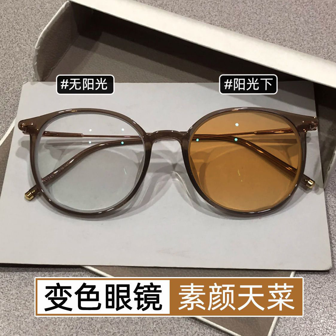 近視の女性向けの超軽量色変化メガネ、度付き、雰囲気のあるメイクアップアーティファクト、小顔、男性用の丸フレーム
