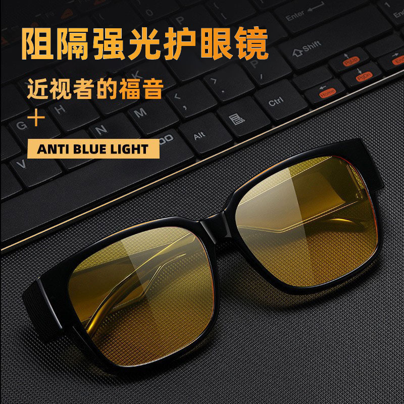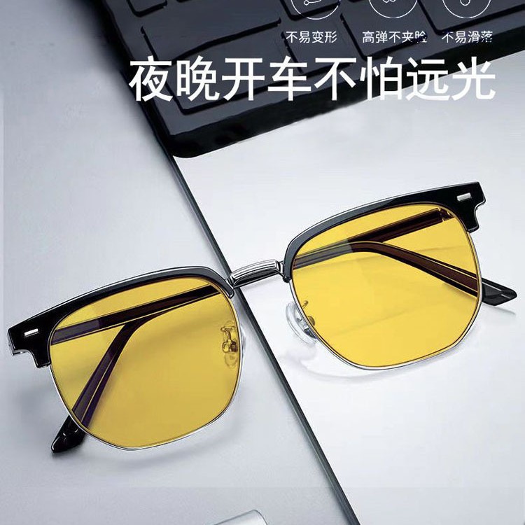新型運転専用遠光防止夜視鏡半枠変色メガネ男少年感防止ブルーライト紫外線防止