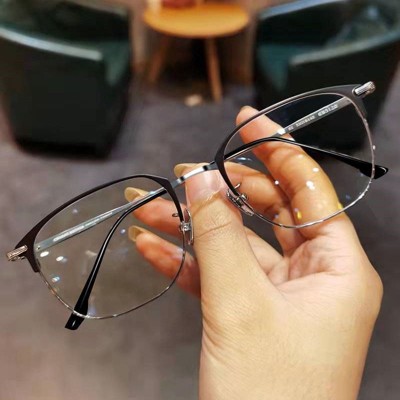 メガネ近視男型かっこいいブルーレイ防止度数金属金糸双梁半枠大枠メガネ女