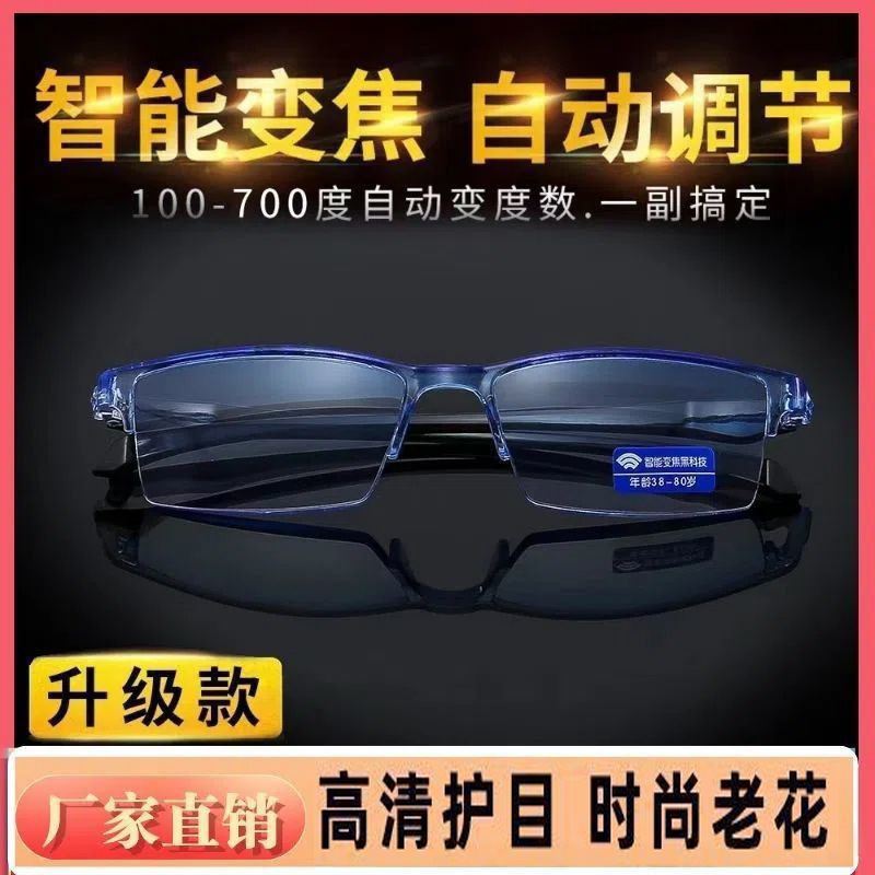 遠近両用老眼鏡中高年高品位老眼鏡男女防ブルーライト知能ズーム遠視鏡