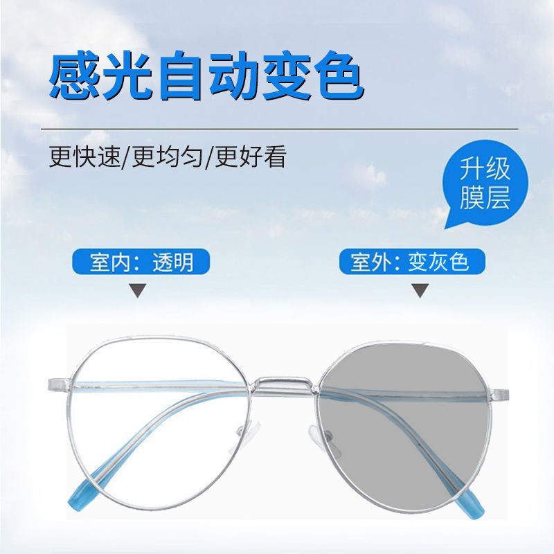 感光変色近視眼鏡女性平光眼鏡無度数保護ブルーレイ紫外線防止サングラスサングラス