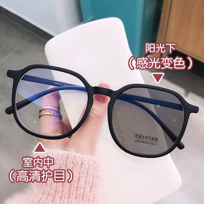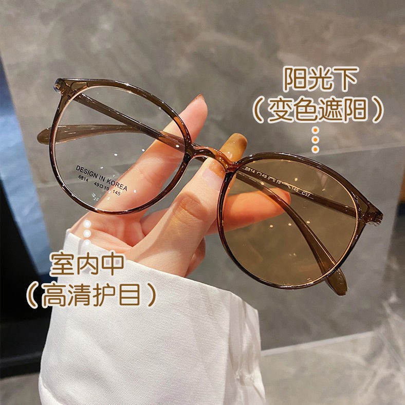 感光変色女子学生潮レトロモカブラウン高颜値素顔メガネブルーレイ防止男子学生潮円顔痩せ