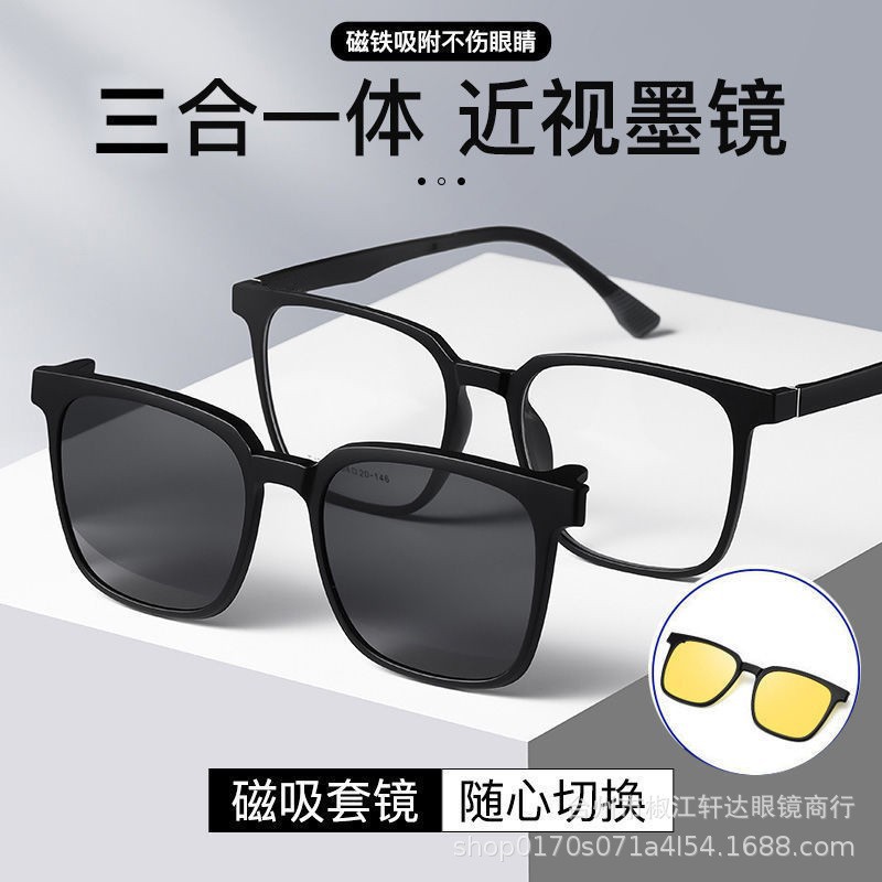 磁気は近視のメガネの男性のセットの鏡を吸います。