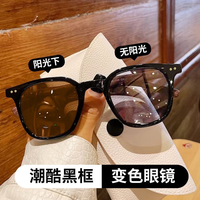 変色近視眼鏡男型格好いい潮レトロ木目ネットレッドins高颜値紫外線防止平光鏡女