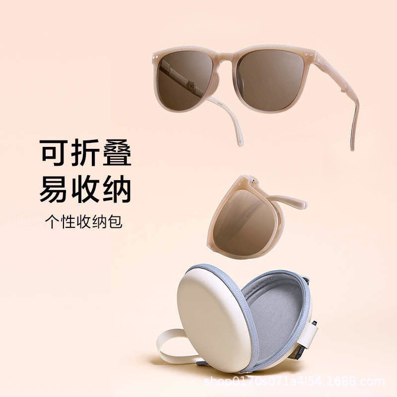 夏の折りたたみ日焼け止めサングラス女性高级感インスタ风韩国语ベージュ白uvカットサングラス男