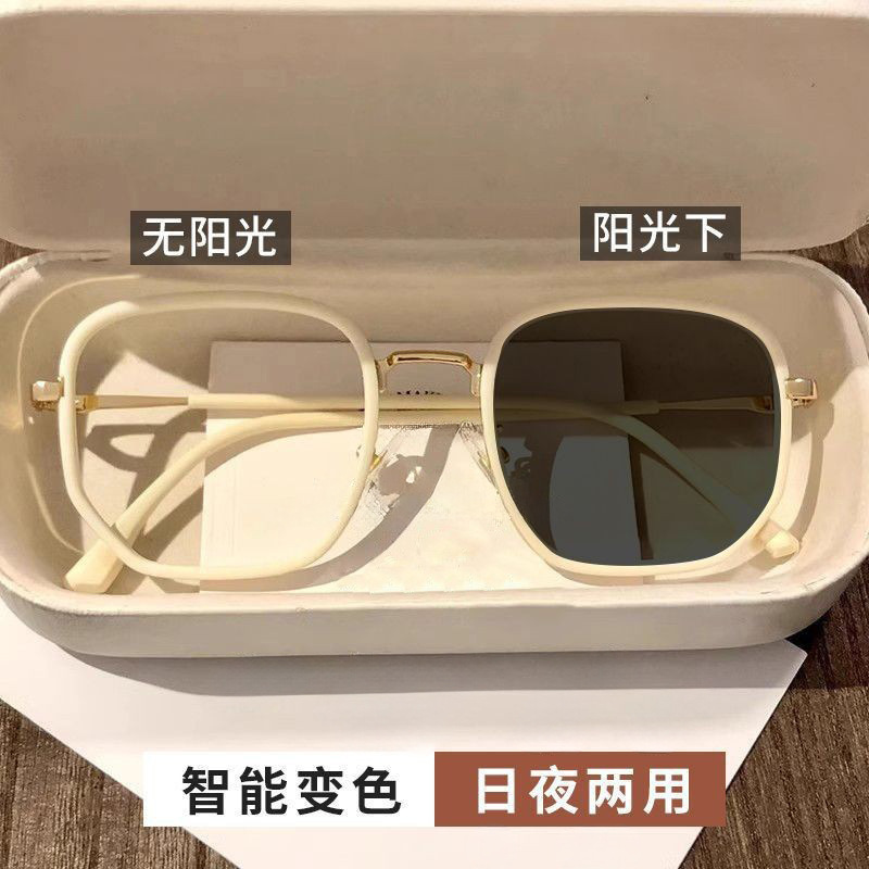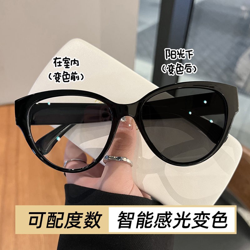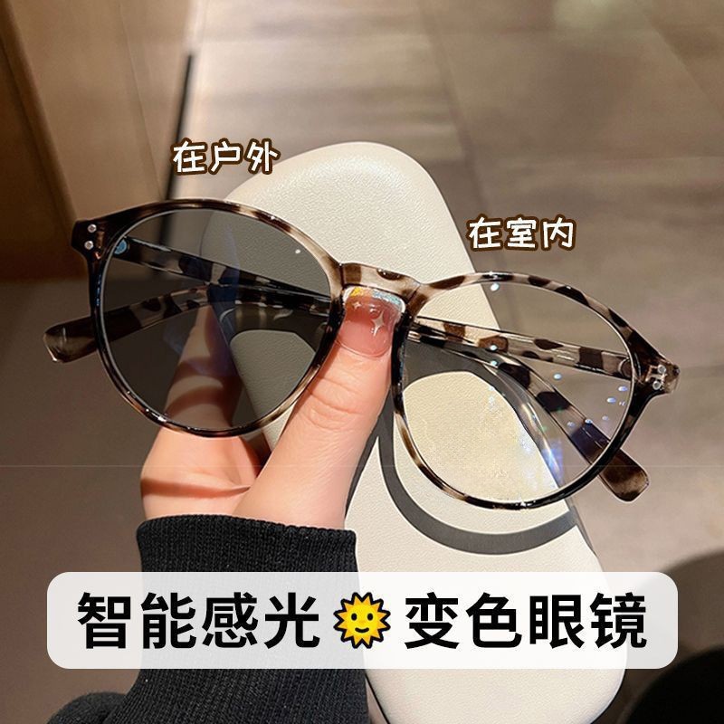 韓国系レトロ感光変色メガネ丸枠女子学生ブルーレイ防止近視素顔黒枠に白い目を見せることができます。