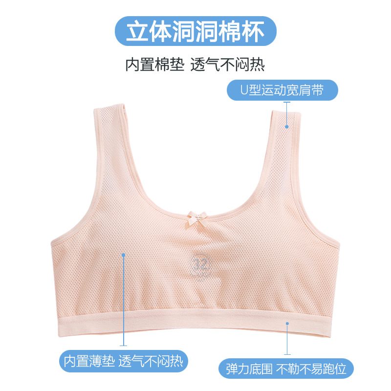 女の子の発育期の小さいベストの1段階の防凸点の小学生の目の穴の通気性の子供の下着の少女のブラジャーは薄いです。