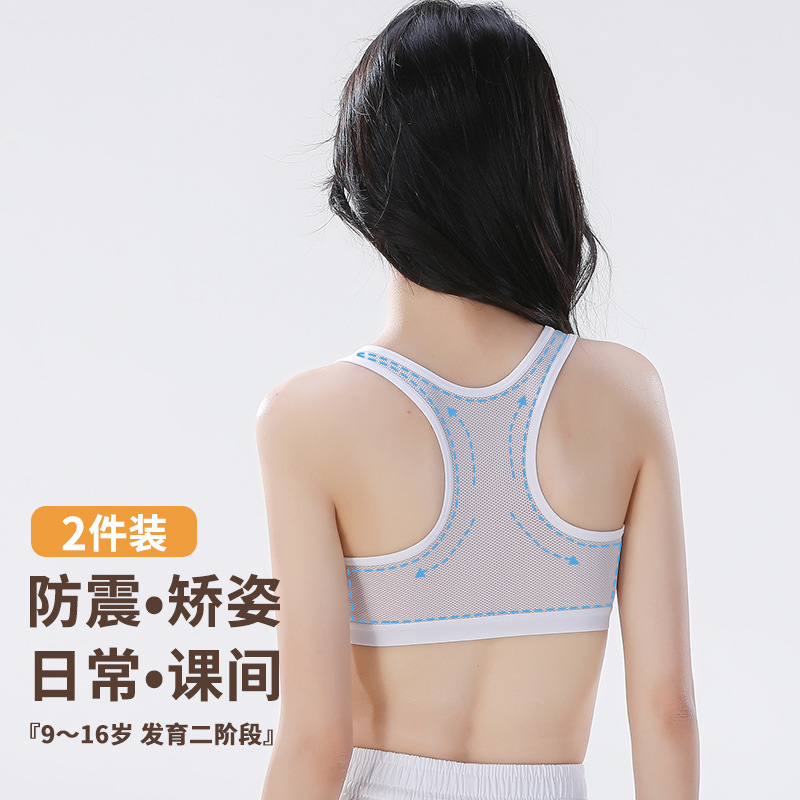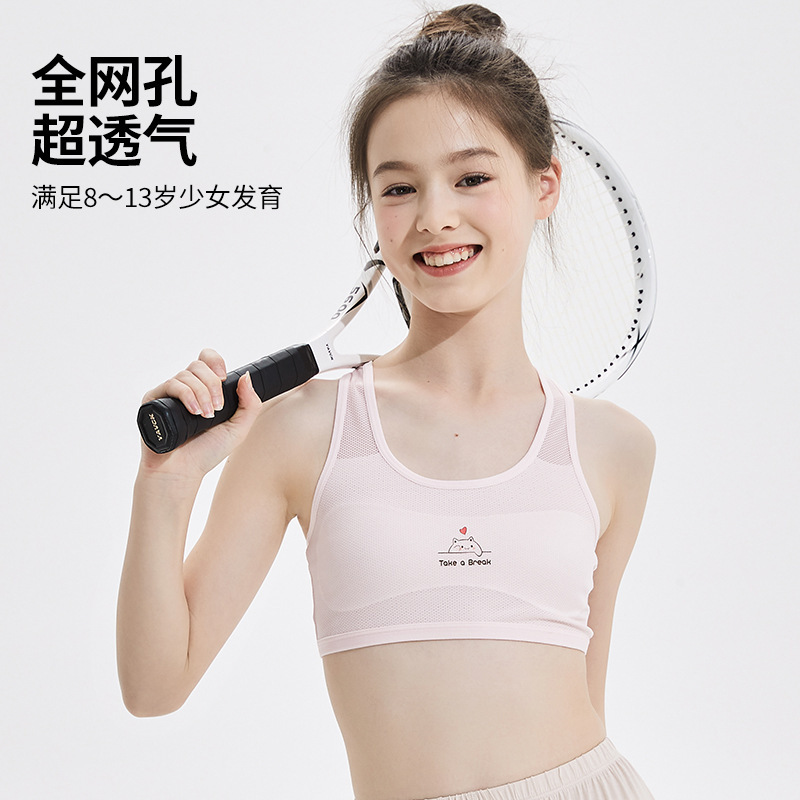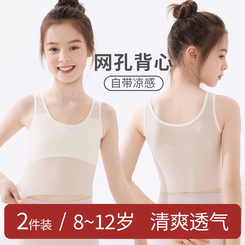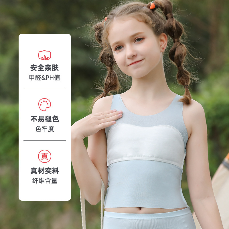 女の子の青春発育期の小さいベストのストラップの中で9-15歳の子供の小学生の下着を着ます。