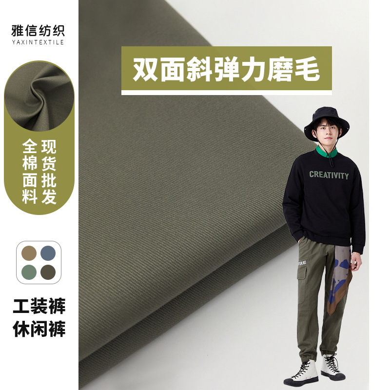【大量現物】純綿厚手両面斜め磨毛弾力カジュアル作業服ズボン作業服生地