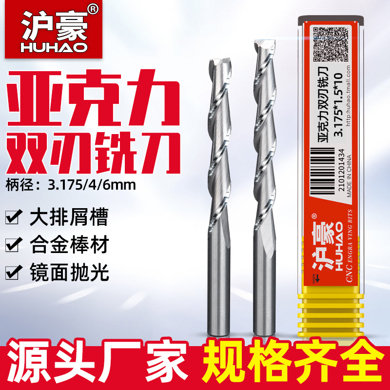 上海豪3.175/4/6mm双刃スパイラルフライス広告pvc板切断彫刻機タングステン鋼フライス