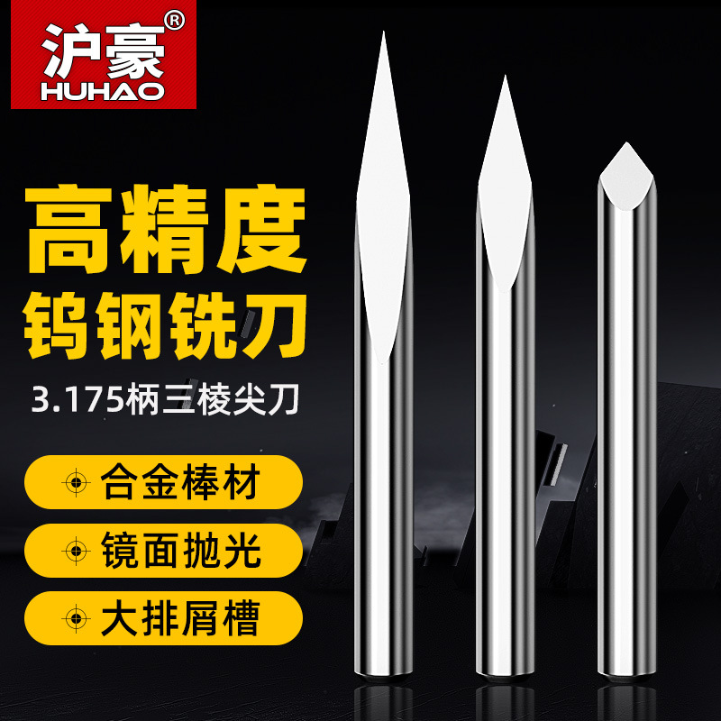上海豪3.175mm高精度三刃尖刀彫刻機刃物石材金属レリーフ彫刻刀3稜尖刀