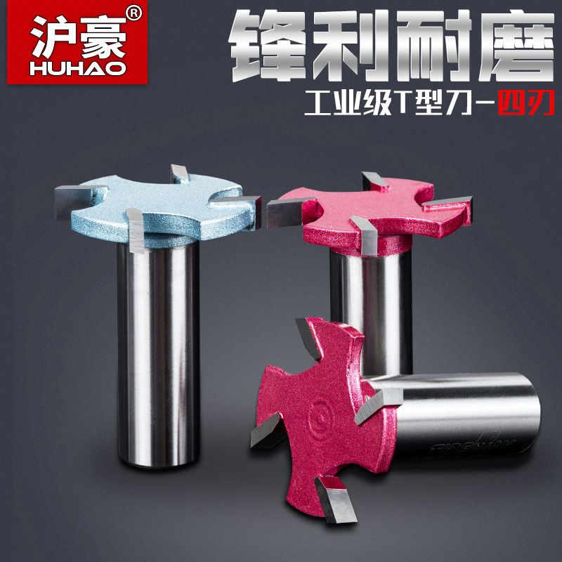 上海豪工業級四刃t型刀1/4タングステン鋼刃実木密度板四歯t型刀1/2木工フライス