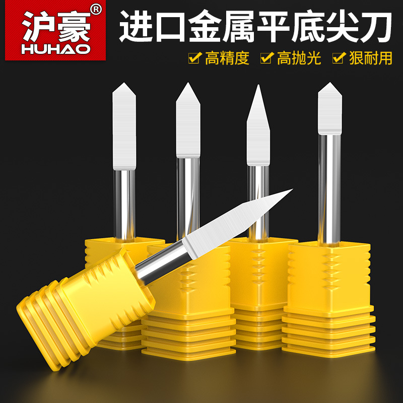 上海豪3.175/4/6高精度タングステン鋼平底尖刀cnc金属彫刻刀木工彫刻機刀卸売り