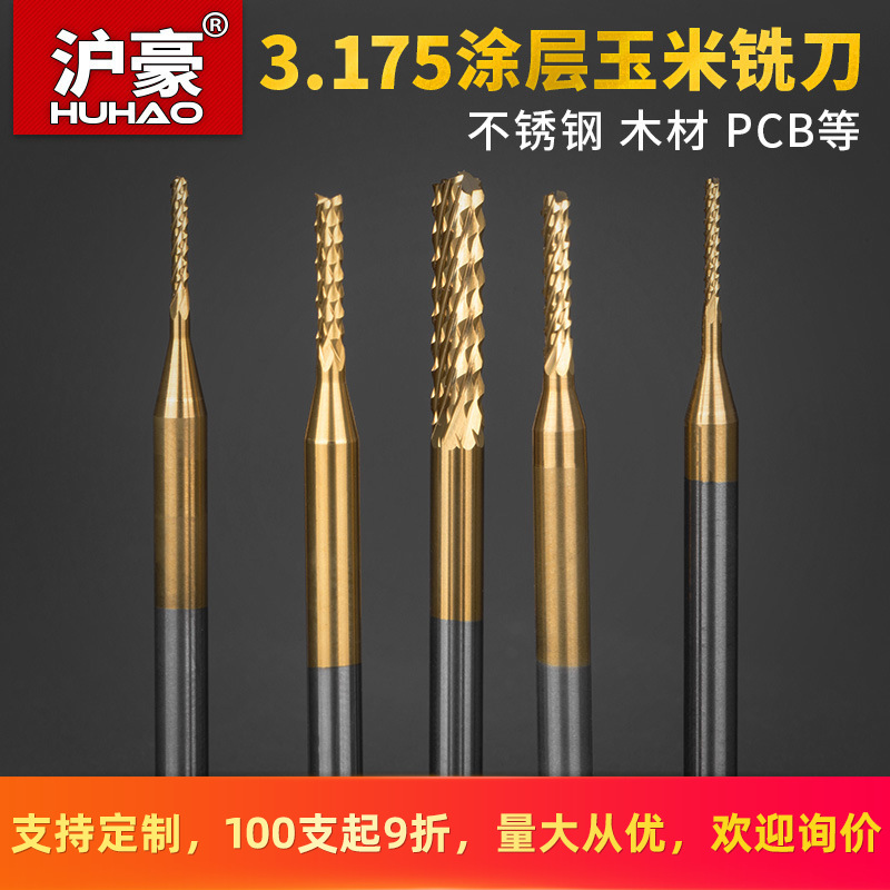 上海豪3.175トウモロコシフライス金色コーティングpcb板どら刀木工nc工具彫刻機タングステン鋼フライス