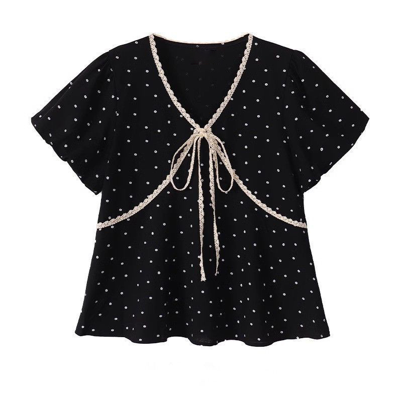 フレンチブラックカラーフライングスリーブプラスサイズ太った女性の夏の新しいルーズスリミングその他/綿Vネックカバートップ