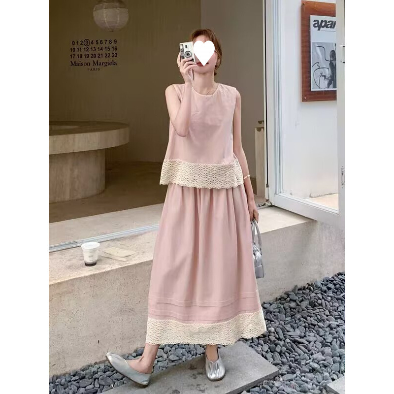 韓国の年齢を減らすファッションアセテートスーツ2025夏の新しい韓国スタイルのスプライシングノースリーブトップスとスカート