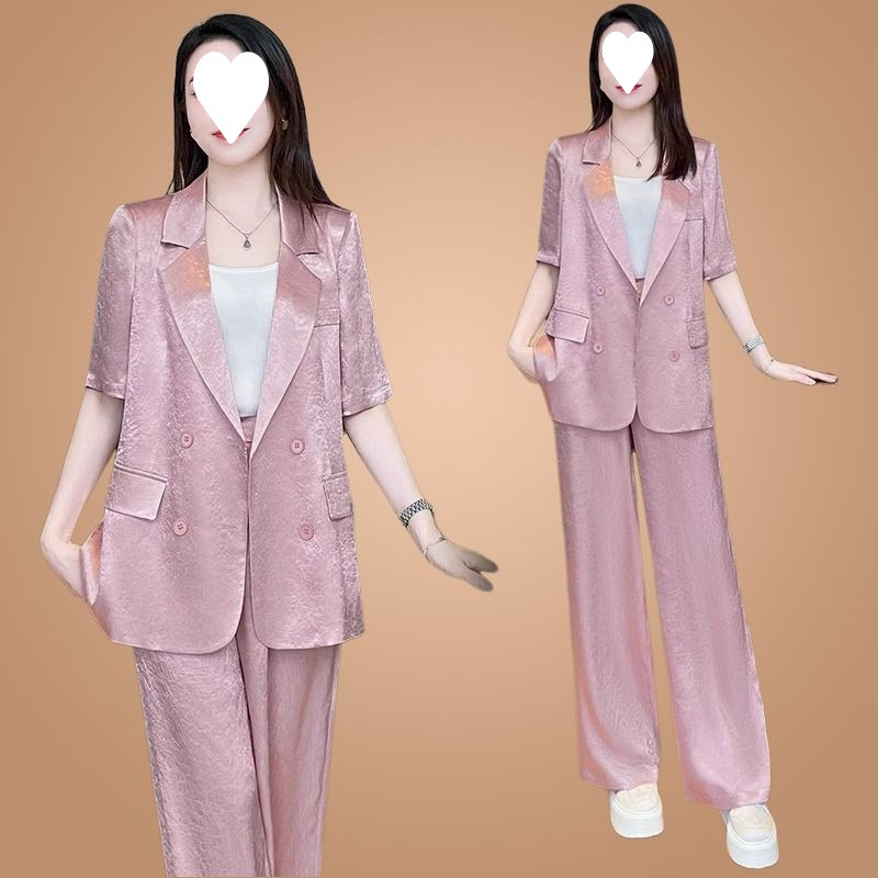 アイスシルク/ビスコース繊維ファッションスーツ女性のための 2025 夏の新しいハイエンド気質スリム半袖スーツ